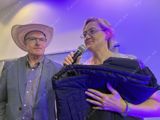Troy Welsh presents the Intermediate Rider runner up award to Fiona Crick. (Larraine Sathicq: 522905_10)