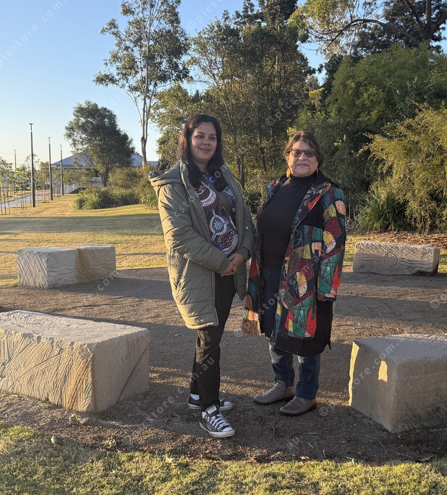 Mununjali artist Waylene Currie with local elder Aunty Geraldine Page. (Larraine Sathicq: 492407_02)