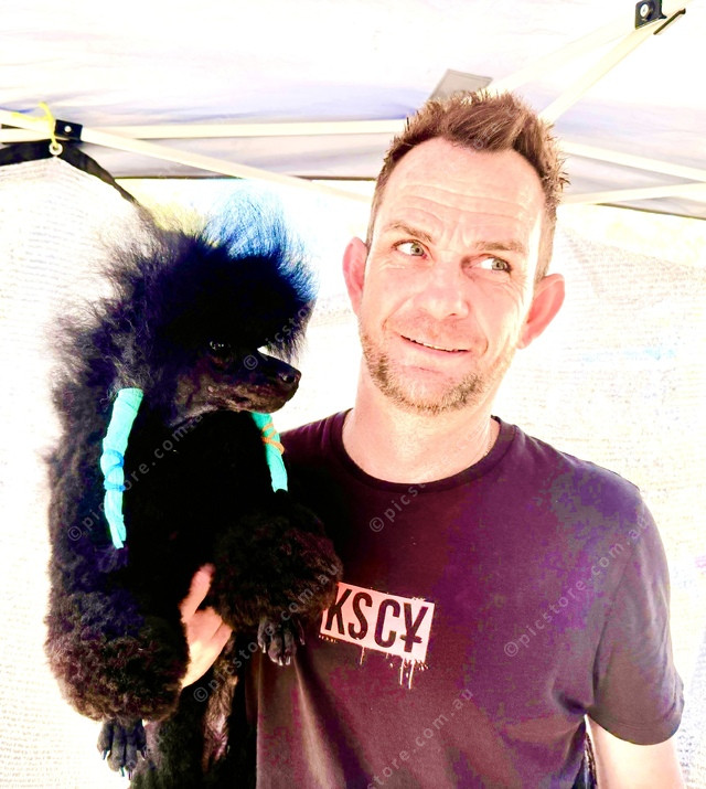 Grant Barrett with his 2-year-old diamond poodle. (Larraine Sathicq: 508306_04)