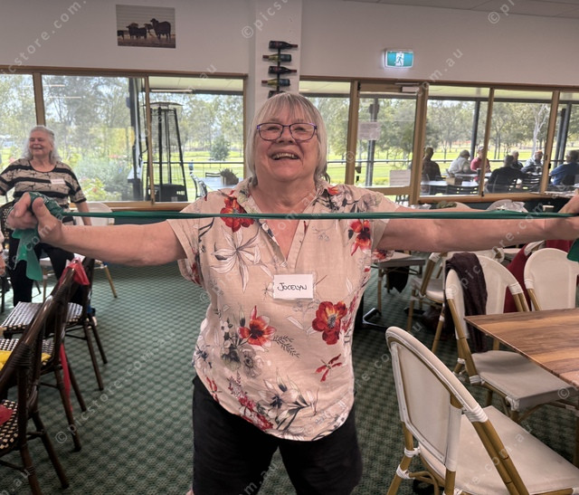 Jocelyn Jenkinson combined the prescribed exercise with a bit of joyful dancing. (Larraine Sathicq: 499288_09)