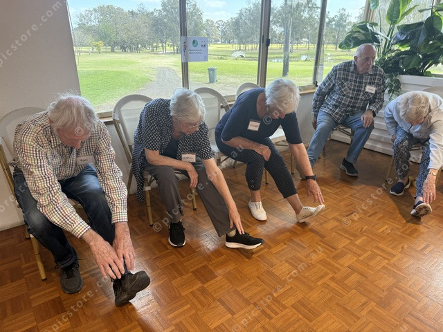 Ray and Cheryl Folley seen here with Liz Avery stretching after completing the 45-minute exercise session. (Larraine Sathicq: 499288_13)