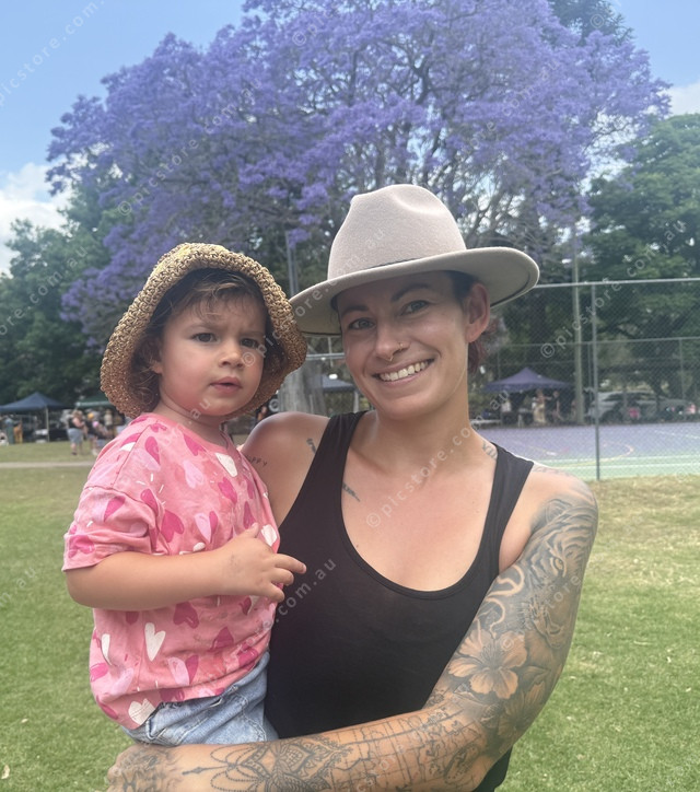 Romy Cowen-Le Hir with her mum Pauline Le Hir came to watch the duck race at Darlington State School. (Larraine Sathicq: 512939_13)