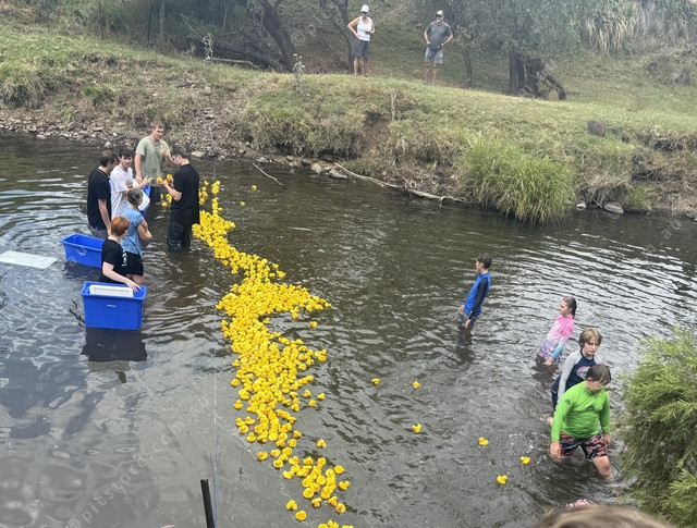 Close call, the winning ducks cross the finish line at Darlington State School. (Larraine Sathicq: 512939_17)