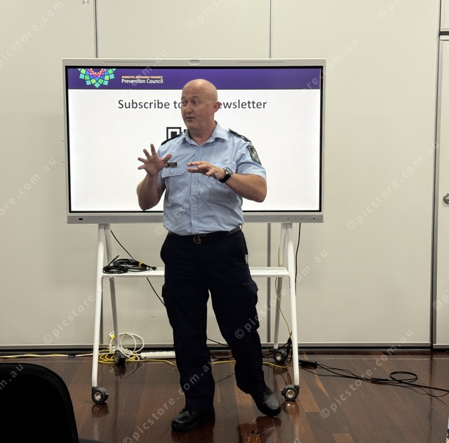 Senior Sergeant Ken Murray outlines his ideas for social change. (Larraine Sathicq: 462576_04)