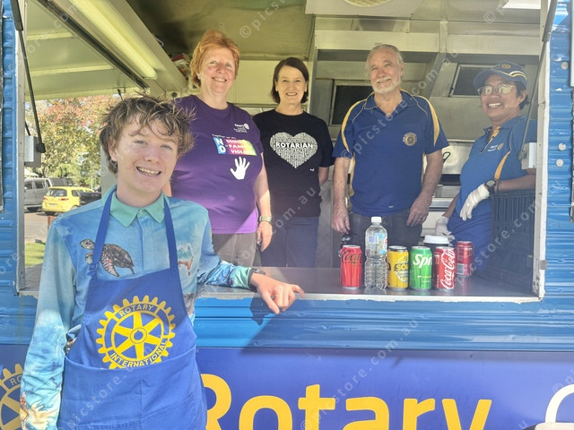 Typhoon le Garde helped Rotary volunteers Linda Jackson. LesleyTurton, Mark Jackson and Rose Peel serve burgers to DFV protesters in Jubilee Park. (Larraine Sathicq: 480187_22)