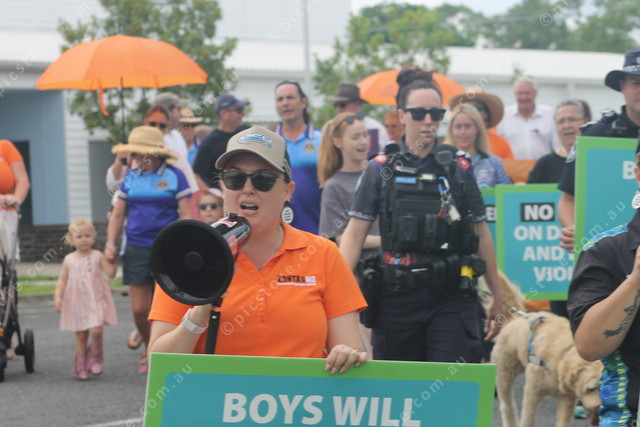 Zonta’s Shayne Probert backed up by community members to send a message that DV will not be tolerated. (Larraine Sathicq: 521333_24)