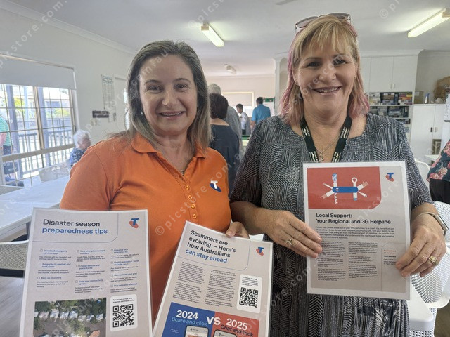Telstra’s May Boisen with Cr Jennifer Sanders at Elysium Village on 30 September. (Larraine Sathicq: 508469_02)