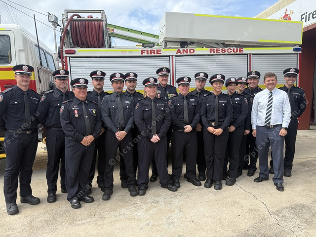 Newly replenished fire crews with Scenic Rim MP Jon Krause at Beaudesert. (Larraine Sathicq: 517705_20)