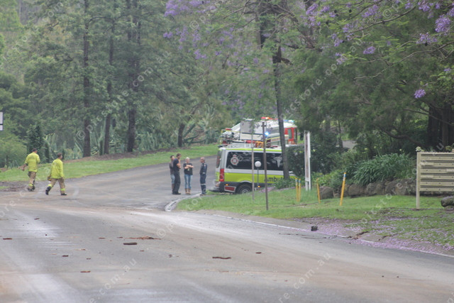 Emergency services at the scene of a traffic accident at Kooralbyn in the aftermath of the flood. (Larraine Sathicq: 517770_19)