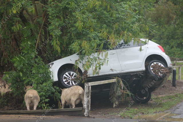 Floodwaters washed a car into a tree at Ogilvie Place Kooralbyn. (Larraine Sathicq: 517770_20)