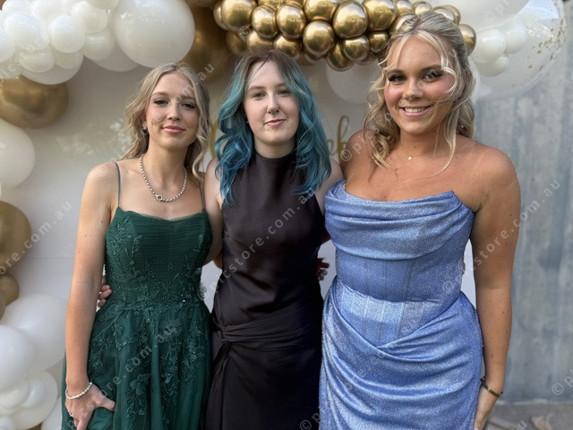 Sienna Petersen, Lucy Rogers and Shaylin Jenkins ready to party at the BSHS year 12 formal. (Larraine Sathicq: 519210_12)