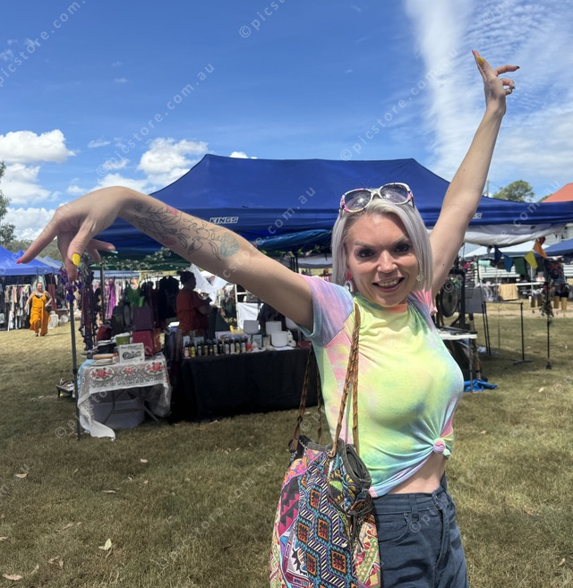 Honnay Spencer expressing joy at Hippy Fest. (Larraine Sathicq: 459712_08)