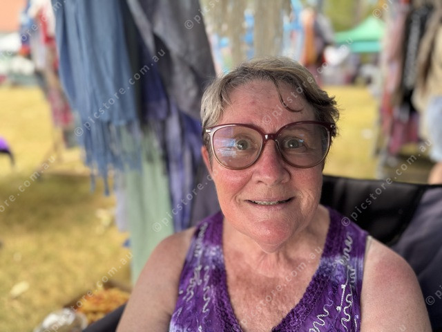 Gail McLean at Hippy Fest for Now and Zen op shop. (Larraine Sathicq: 459712_10)
