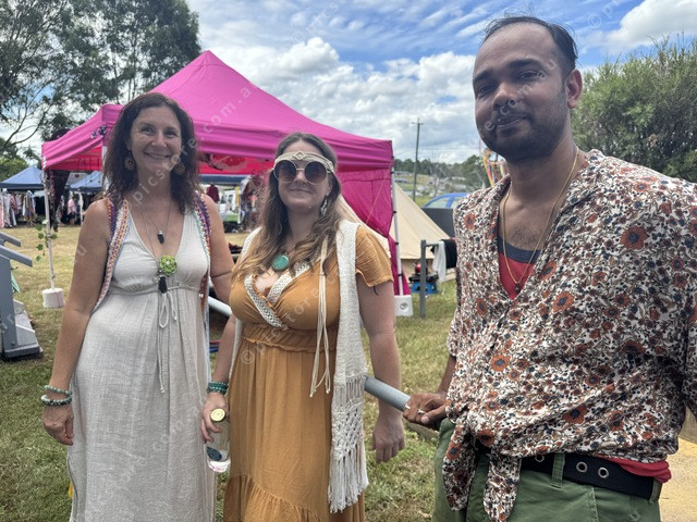 Sheree Davey, Kelda John and Nick Sesh channel their inner hippies at Woodhill Hall. (Larraine Sathicq: 459712_11)