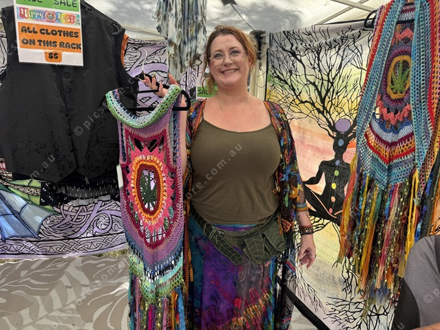 Fibre artist Chelsea Wiggins displays her Crafty Red Fox fashions at Hippy Fest. (Larraine Sathicq: 459712_13)