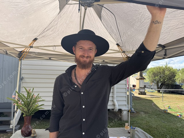 Spiritual mentor and coach Dean Bentley from Tamborine Mountain at Hippy Fest 2025. (Larraine Sathicq: 459712_14)