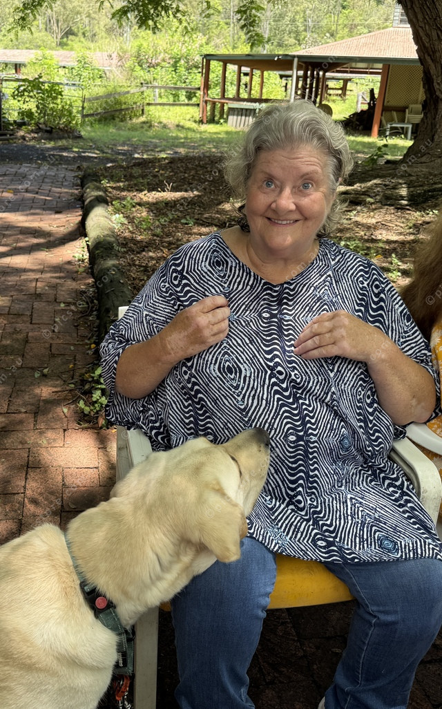 Pamela Dean with her service dog and best mate Brody, who knows how to behave at a sausage sizzle. (Larraine Sathicq: 453185_13)