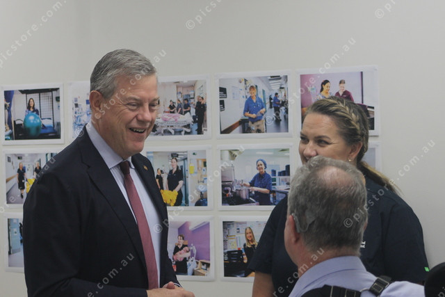 Health minister Tim Nicholls chats with hospital staff during the 125th anniversary celebration. (Larraine Sathicq: 512034_11)