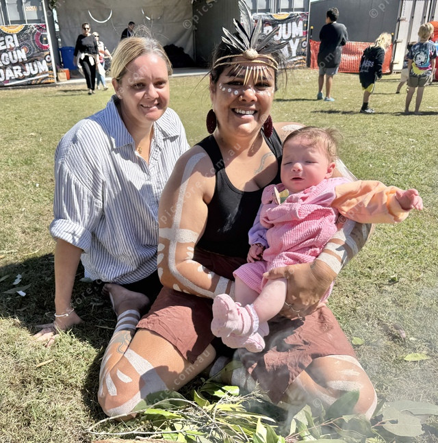 Sharni Currie and Waylene Currie with baby Marlowe Bullock at the jarjum day event. (Larraine Sathicq: 499783_02)