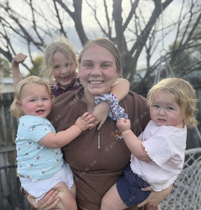 Supermum Jarnah Lee with her twins Amaya and Zayah, 1, and six-year-old daughter Layana. (Larraine Sathicq: 494996_01)