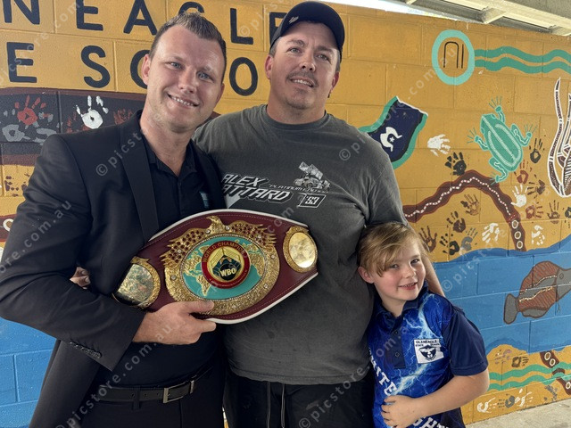 Jeff Horn with parent James Matthews and daughter Havanah, 7. (Larraine Sathicq: 459680_06)