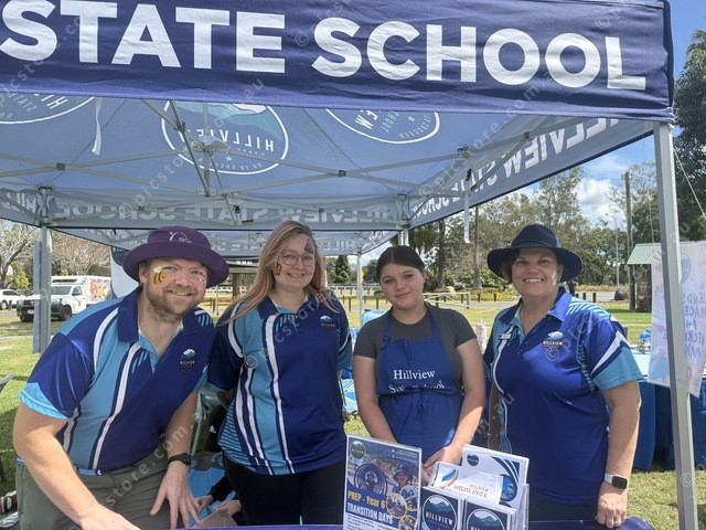 Hillview State School teacher Andrew Wood with Principal Phoebe Huttunen, student Shayla Roberts and business manager Rhonda Thorpe joined the fun at the Kalwun event in Jubilee Park Beaudesert. (Larraine Sathicq: 503268_10)