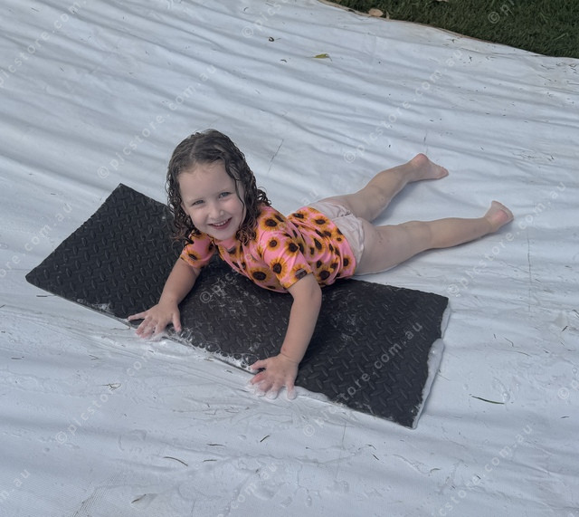 Laura Seaborn on the slip n slide at Kooralbyn on Australia Day. (Larraine Sathicq: 455639_02)