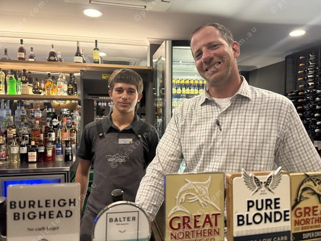 Kai Williams behind the bar at the L and A with venue manager Scott Maiura. (Larraine Sathicq: 483269_02)