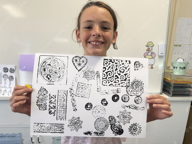 Charlotte Lommerse with her woodblock art. (Larraine Sathicq: 534442_04)