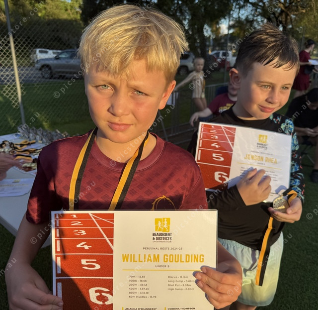 William Goulding and Jenson Rhea received gongs for U9 events at Little Athletics. (Larraine Sathicq: 470254_06)
