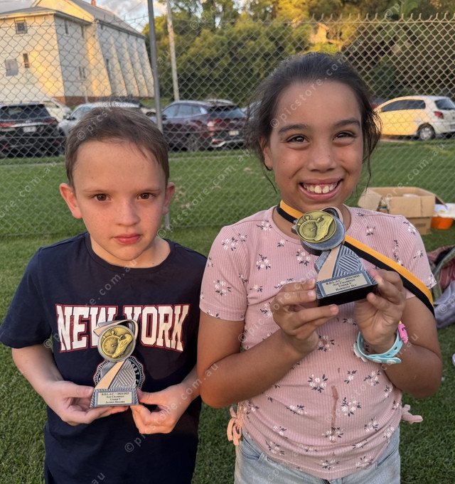 U9 age champions Jayden Holmes and Harmony Sly. (Larraine Sathicq: 470254_16)