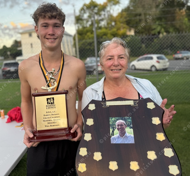 Darryl Dickson Memorial Trophy Grand Champion winner Will Robinson with Coach Helen White. (Larraine Sathicq: 470254_29)