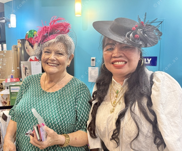 Gail Strongman-O’Brien and Elisa Jones at The Club Beaudesert on Melbourne Cup Day. (Larraine Sathicq: 515334_05)