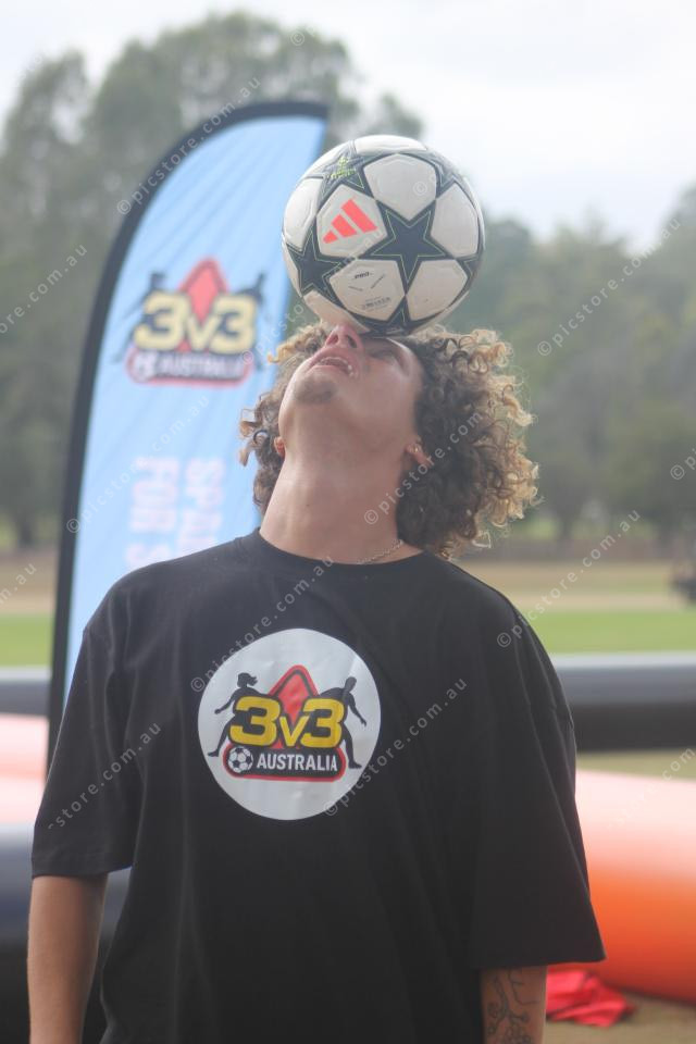 Adrian Krog demonstrates his freestyle soccer skills at Gleneagle State School. (Larraine Sathicq: 509668_13)