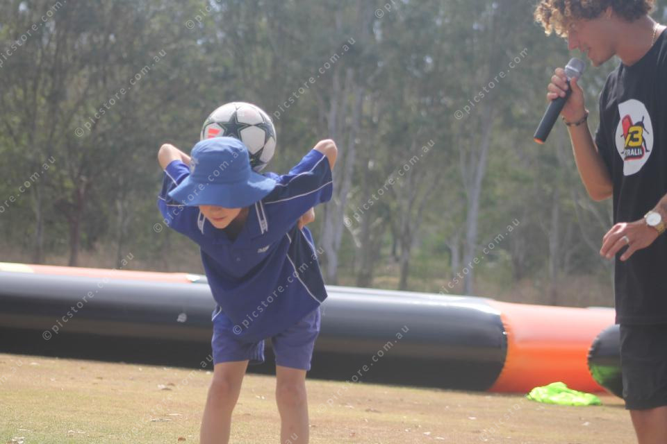 Archer Thompson juggles soccer ball at Gleneagle State School. (Larraine Sathicq: 509668_18)