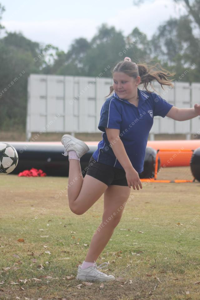Olivia Murdoch tests her soccer skills at Gleneagle State School. (Larraine Sathicq: 509668_20)