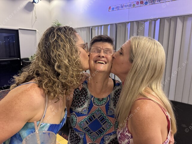 A kiss from the “baby midwives” Erica Parker and Niki Brodrick. (Larraine Sathicq: 458362_04)