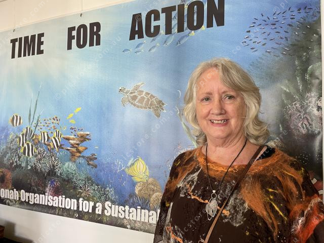 342212_03 Chris Bowman, the artist who created the call to action painting said she was proud her work was used for this and other worthy environmental campaigns. Photo: Larraine Sathicq