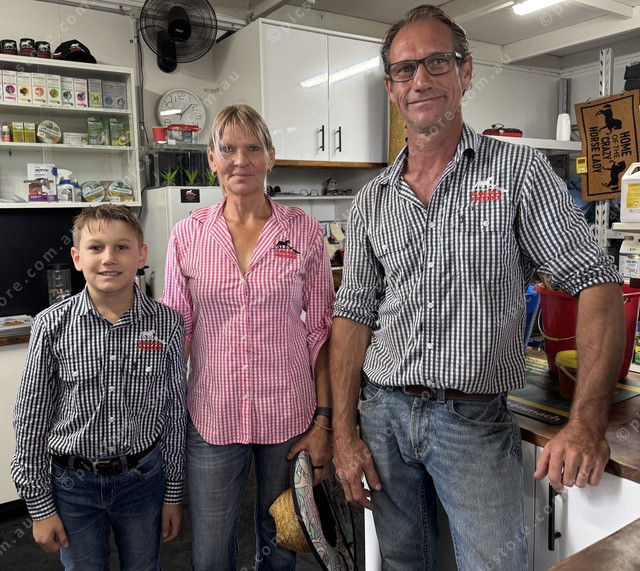 Nate Gray, 10, with Michelle Heikkonen and store owner Brendon Gray at Gleneagle Produce community market. (Larraine Sathicq: 447220_01)