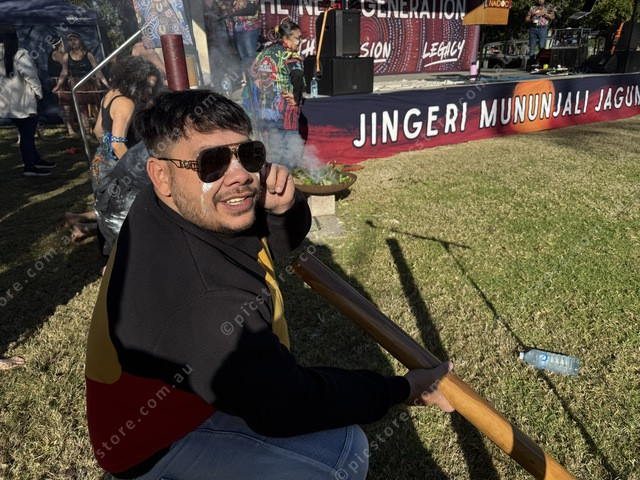 Jarred Fogarty played his didge at NAIDOC Week celebrations in Beaudesert. (Larraine Sathicq: 488522_02)