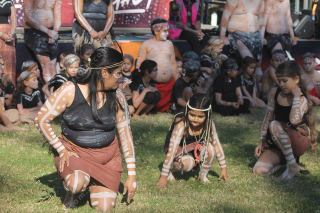 Mununjali Ngari dancers share the stage performed with the next generation of traditional dancers. (Larraine Sathicq: 488522_19)