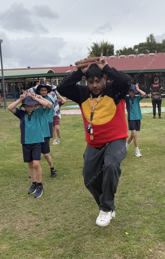 Jarred Fogarty teaches cultural dance during NAIDOC education day. (Larraine Sathicq: 495198_25)