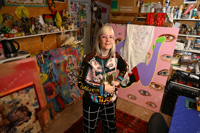 Pic of Sunbury artist Renee Broders in her home studio. Photo by Damjan Janevski. 486598_05