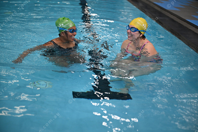 BTN, adult’s learning to swim. Pic of Shailaja Samudrala and Barbara Murotake. (Damjan Janevski). 490621_06