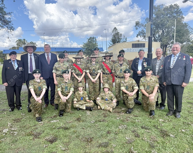 Scenic Rim Regional Cadets with RSL Sub Branch members and town leaders on Peacekeeping Day. (Larraine Sathicq: 503317_05)