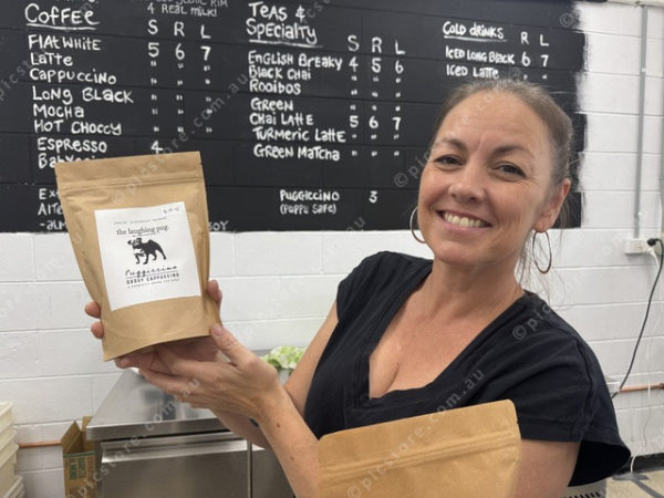 Erin Talbot with probiotic doggy cappuccino at Pantry Vibes. (Larraine Sathicq: 461024_02)