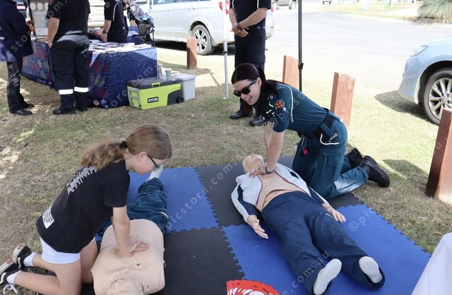 Local children practised CPR with Beaudesert paramedics at a previous Kooralbyn open day. (Larraine Sathicq: 529001_06)