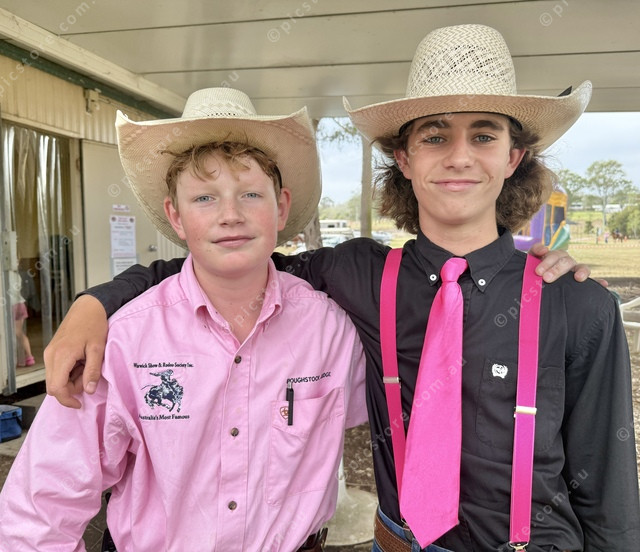 Jacob Welsh and Jett Richards turned up dressed to impress on Pink Cutting Day. (Larraine Sathicq: 509797_01)