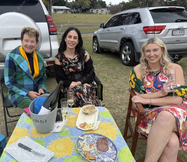 Beaudesert’s own Ellen Logan, Shar Moana and Jaime Coetzee enjoy high tea at the polo. (Larraine Sathicq: 493895_03)