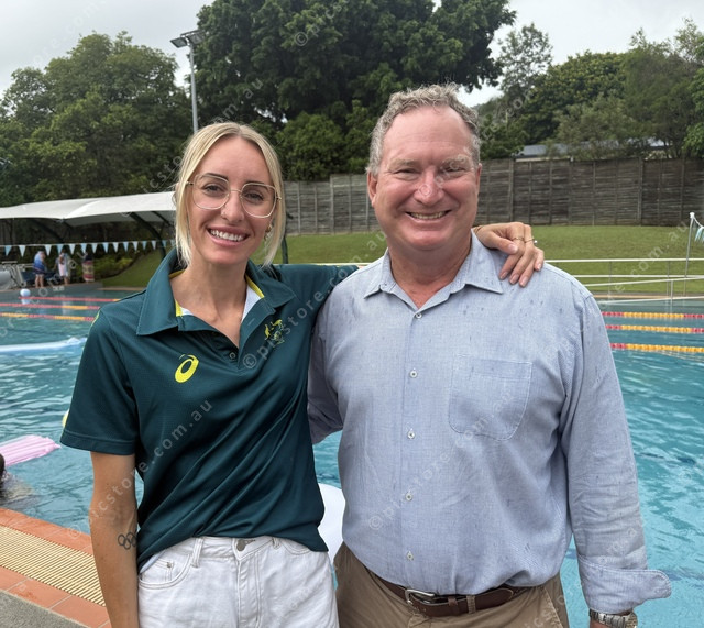 2016 Olympian Taylor McKeown with Cr Steve Moriarty at Canungra swimming pool. (Larraine Sathicq: 529185_08)